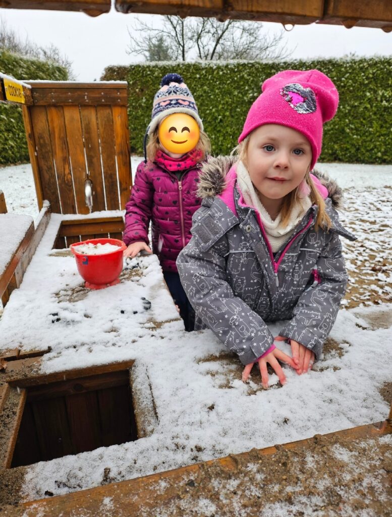 Der erste Winterzauber in unserer Kita! Unsere Kinder haben ihn gesammelt, daraus kleine Schneekuchen gebacken und sogar ihren ersten kleinen Schneemann daraus gebaut. Ein wunderschöner Start in die Winterzeit!